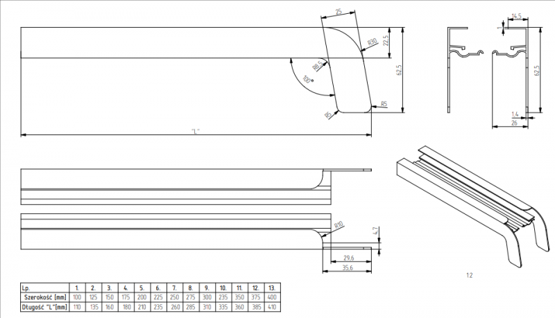 Zaślepka przeznaczona jest do parapetów zewnętrznych softline, jej długości wynoszą od 100 do 400 mm- czyli co 2,5 cm.
