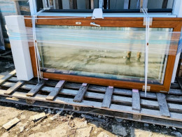 Okno PCV Veka Climastar 82 MD 2700x2400 mm FIX + rozwierno-uchylne złoty dąb trzyszybowe 2-kwaterowe